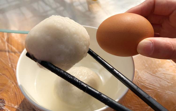 ■和鸡蛋一般大,周到君吃上2个汤团,午饭的其他饭菜就再也吃不下了。