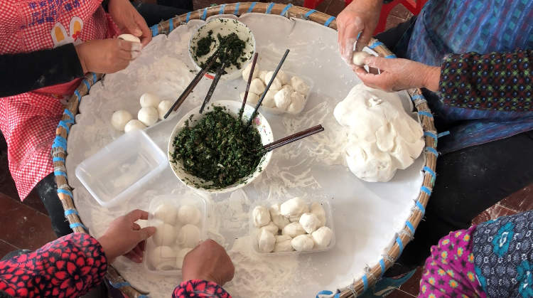 说这话的是坐在浦东新区余姚村乔占家庭农场餐桌旁正吃着的一位上海爷叔,他专程从外滩家中赶过来,而他口中的“网红”就是马兰头汤团,我们今天的主咖,对了,它还有个昵称叫做浦东大圆子。