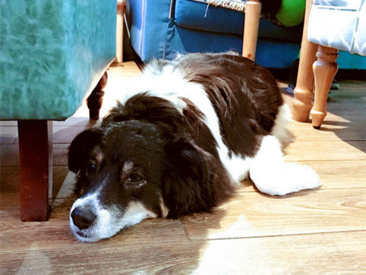 坐定下来,发现客厅里除了老那和店长(也是大头的表弟)外,还趴着一位“成员”——一只名叫“回来”的黑白两色苏格兰牧羊犬。他走过来嗅了嗅我们,然后便淡定地趴回了自己的窝。