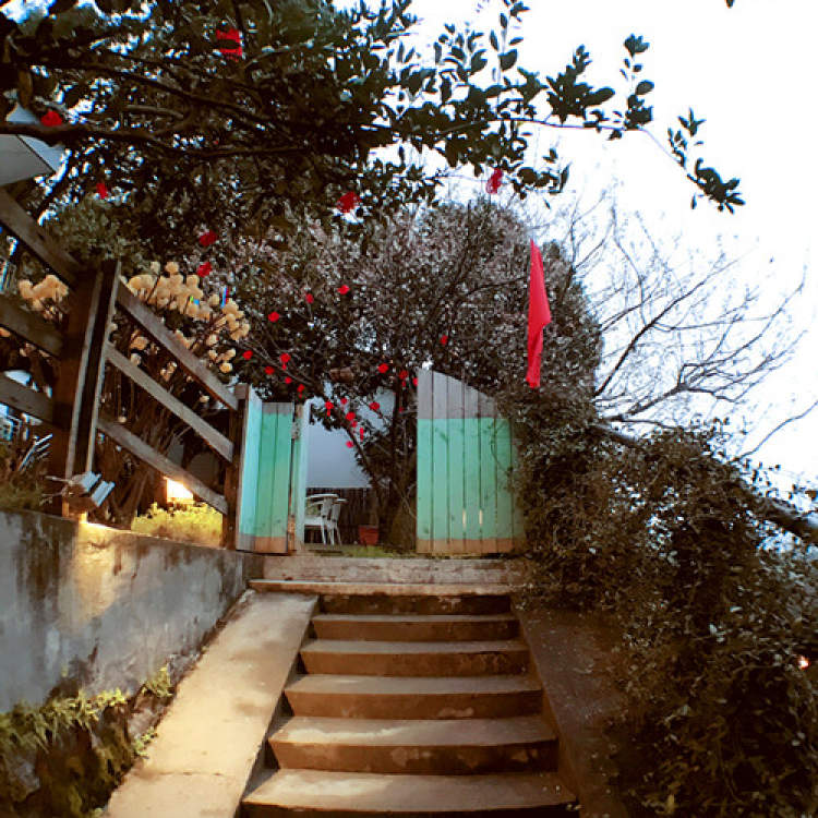 沿着路边的石阶向上,推开一扇木质的围栏,