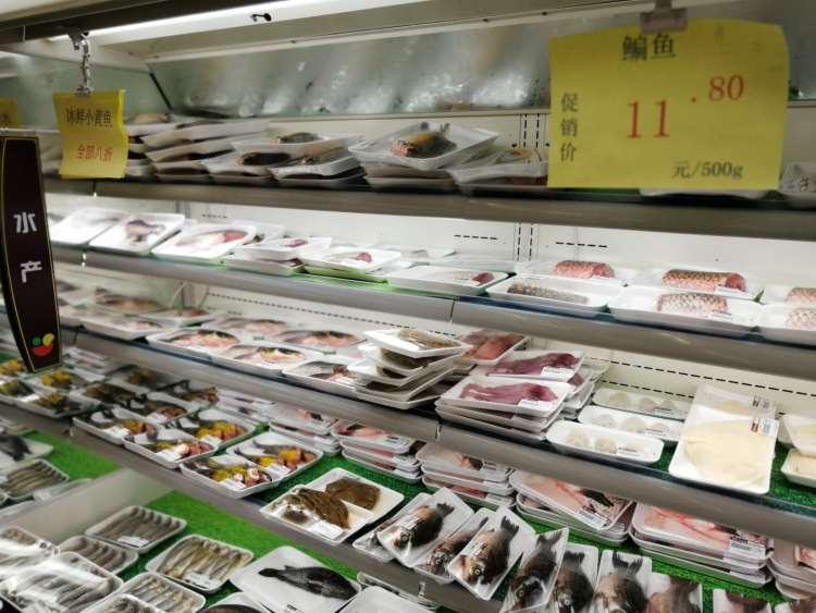 肉蛋鱼类,分门别类码放整齐,看起来非常新鲜。
