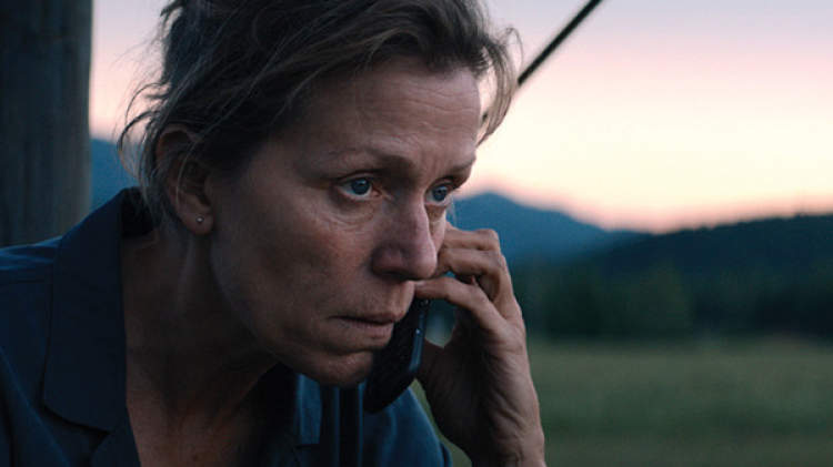 有趣的是,《三块广告牌》和第一次将她捧上此位置的《冰血暴》一样,都是在一群男人中游离、徘徊的戏。身单影的她,只能靠着自己的诠释,独自撑起整部戏的女性魅力。