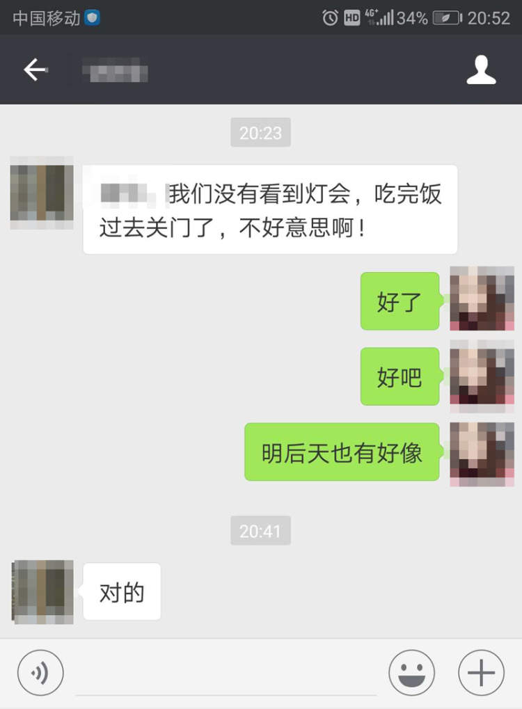 莘莘的朋友8点过后去到灯会现场,却被告知已经关门了,所以还是建议大家干早去。