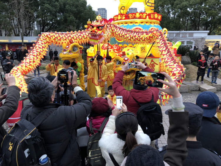 ■门口的舞龙表扬精彩是精彩,可就是架不住人多