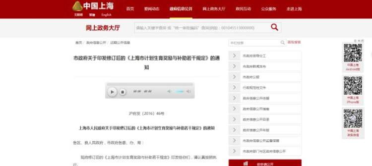 之后,五阿哥登录到“中国上海”官方网站查询《上海市计划生育奖励与补助若干规定》原文,规定自2016年1月1日起实施,有效期5年。