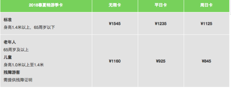答:同一游客持同一张“2018春夏畅游季卡”可在2018年3月16日至7月31日期间多次入园游玩。畅游季卡将对一般游客、老年人、儿童及残障游客推出三种类别,分别是:适用于除2018年4月5日、4月6日和4月30日以外的所有周一至周五,且适用于4月8日(周日)和4月28日(周六)的“平日卡”;适用于2018年7月31日之前所有日期的“无限卡”;以及适用于除2018年4月29日以外的所有周日的“周日卡”。