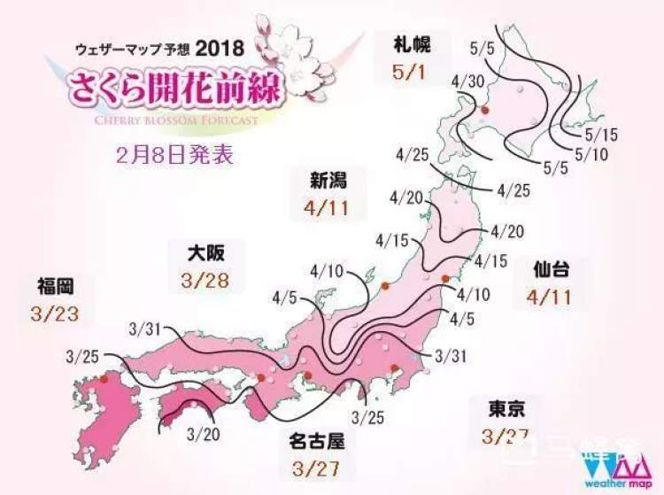 如果走出国内,日本无疑是全球知名的赏樱胜地。今年日本的樱花从南到北的花期是怎样的?来看一看2月8日发布的樱花前线预报。