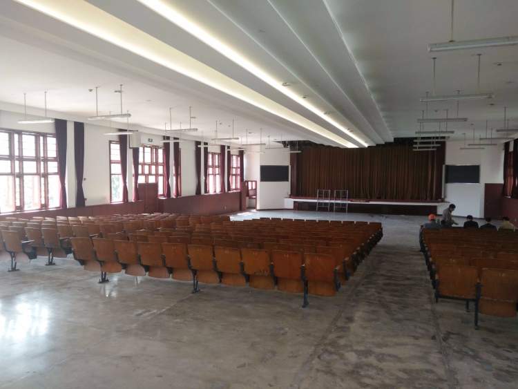 北堂的外表朴素,甚至有些平平无奇。水波样的外墙包裹着它,将之掩藏在南堂身后。这座拥有751座的全新多功能剧场将满足校园歌舞剧演出、音乐会演出,会议举办和电影放映等各类需要。