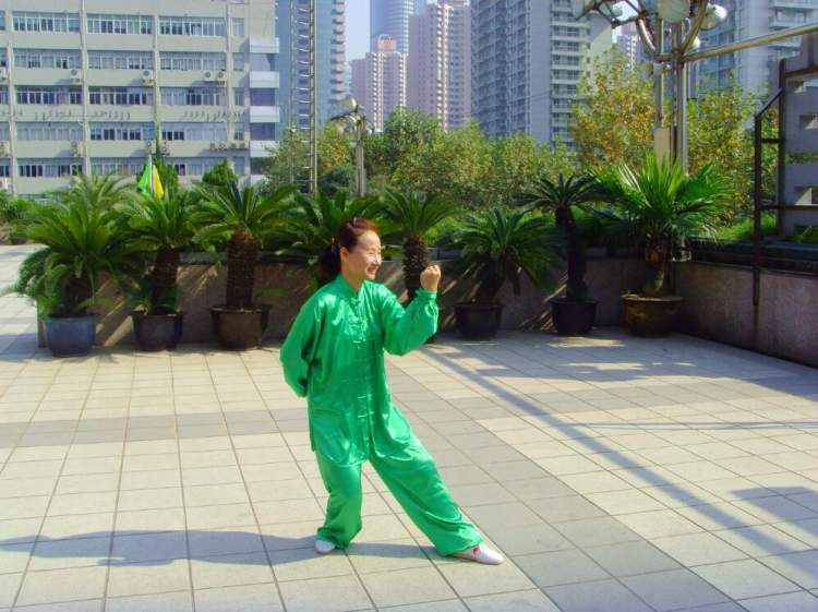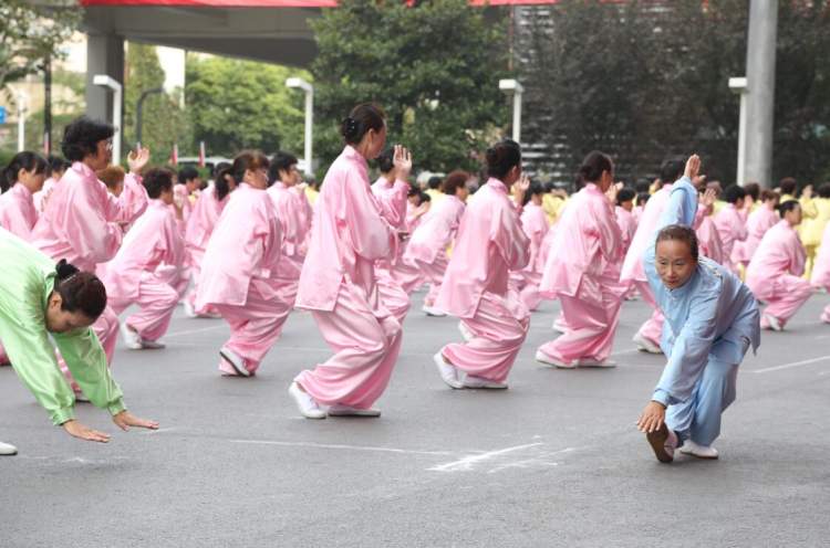 每天清晨,只要你穿梭在江湾镇街道的社区里,在一群练习健身气功的人群中,总能见到宋雯秀活跃的身影。