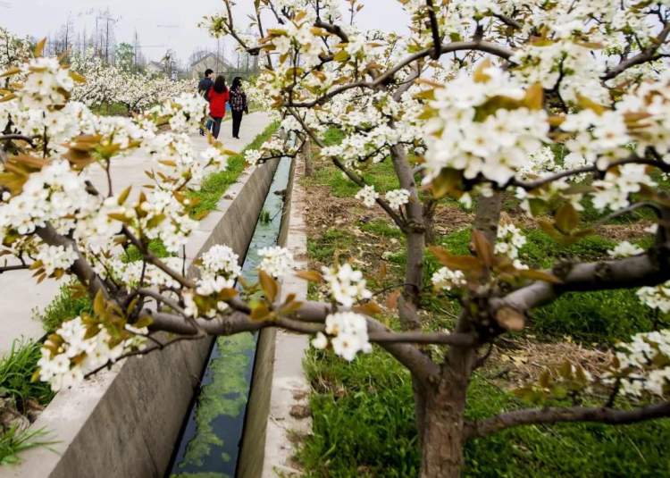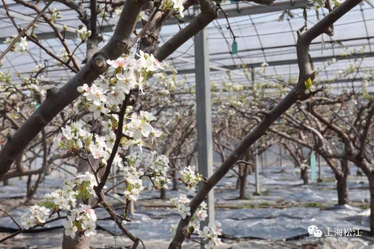 松江人对梨最熟悉的记忆停留在仓桥水晶梨。这几天,基地30亩大棚内的早生新水已经先行开放,树树梨花,花团锦簇,一片雪白。