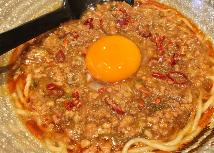 中间那颗橙黄的蛋心,让人还没开吃就垂涎欲滴。是的,这可是生蛋哦。将蛋黄拌开以后,与汤汁搅拦在一起,汤底更加浓郁了。份量不太多,做得算是比较精致,不算太麻,但香辣感都出来了,整体口味还算不错。拉面比较有劲道,嚼劲十足,面也比较粗。麻婆拉面的浇头感觉像是用瘦猪肉做成的辣酱,加入了小菜、粉丝和红辣椒,十分入味。