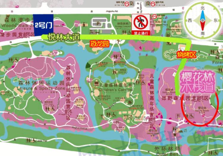 除了园外交通,园内樱花集中区域也就是客流集中区域,也会视情况采取单向游园的措施。