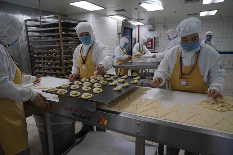 制作好了的面包还需要进行包装,外部印上了加工信息——