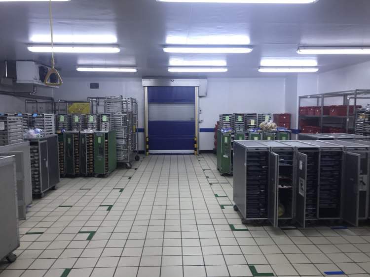 这是飞机餐食的最后一步,食品分装完成后被运送到冷库,装进餐车(很熟悉吧)——
