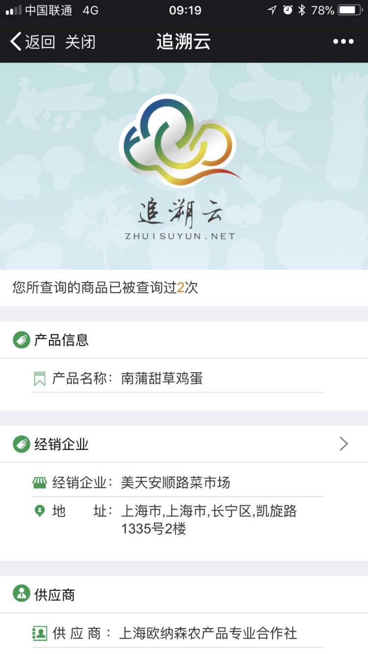 周到君在美天安顺菜市场内看到,以禽蛋、蔬菜类为主的生鲜农产品柜台上竖着的标签大多都“捎上”了一个小小的二维码,扫描后即可获得相关的追溯信息。以“南浦甜草鸡蛋”为例: