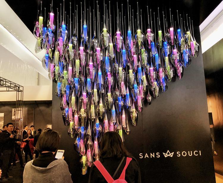 捷克奢华灯具品牌Sans Souci,这面灯墙除了照明和营造气氛的作用,微风吹来,灯与灯之间相互碰撞,还像极了风铃。