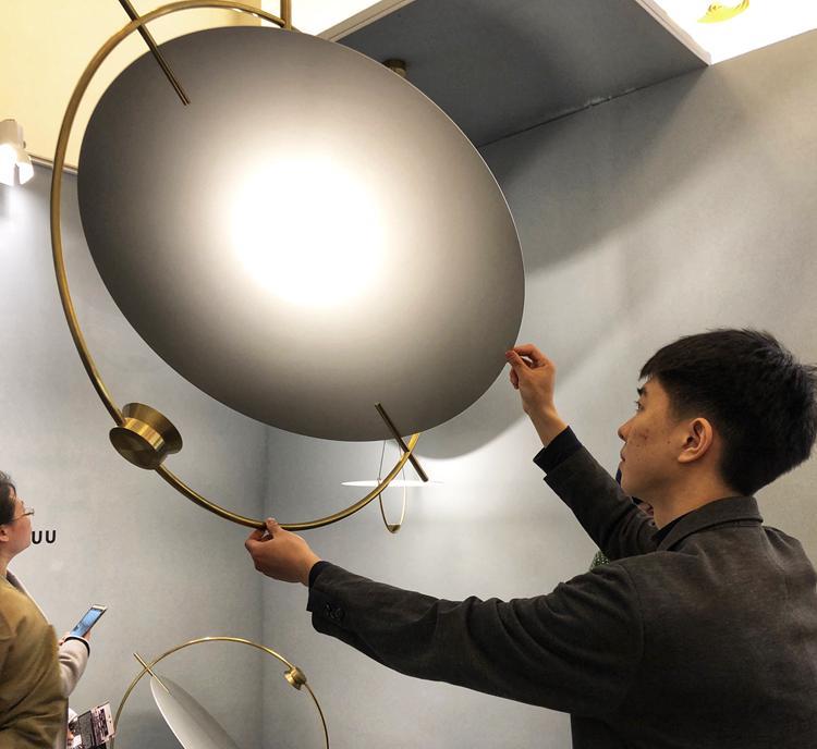 这是WUU家具品牌的行星系列灯具。WUU(物)由设计师陈福荣成立于2014年,作为一个家具日用品品牌,一方面追求实用价值,一方面又不断升级审美。现场展出的每一件作品,都好像印证了设计师坚持的信念:物品只有在被长久使用时,才得以实现永恒。