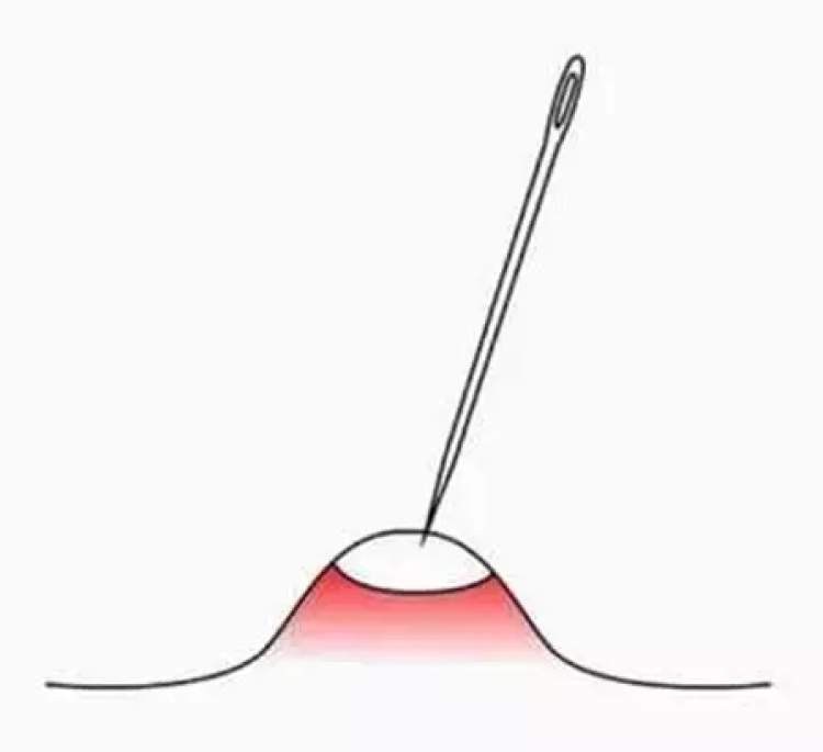 用三棱针将痘痘顶部刺破,开个小口,然后用手挤。这样挤效果更好哦!