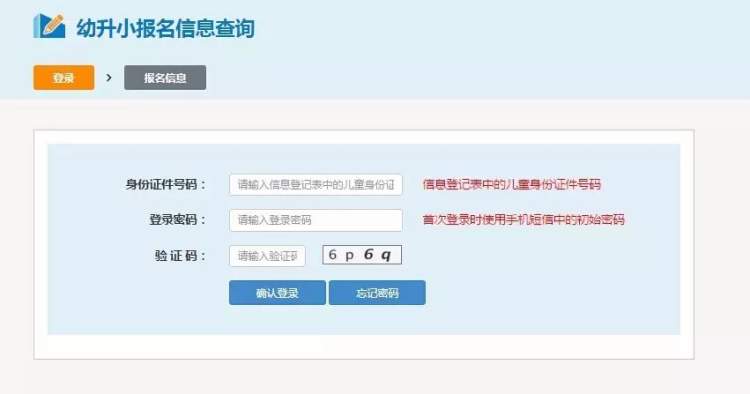 幼升小报名信息查询内容: