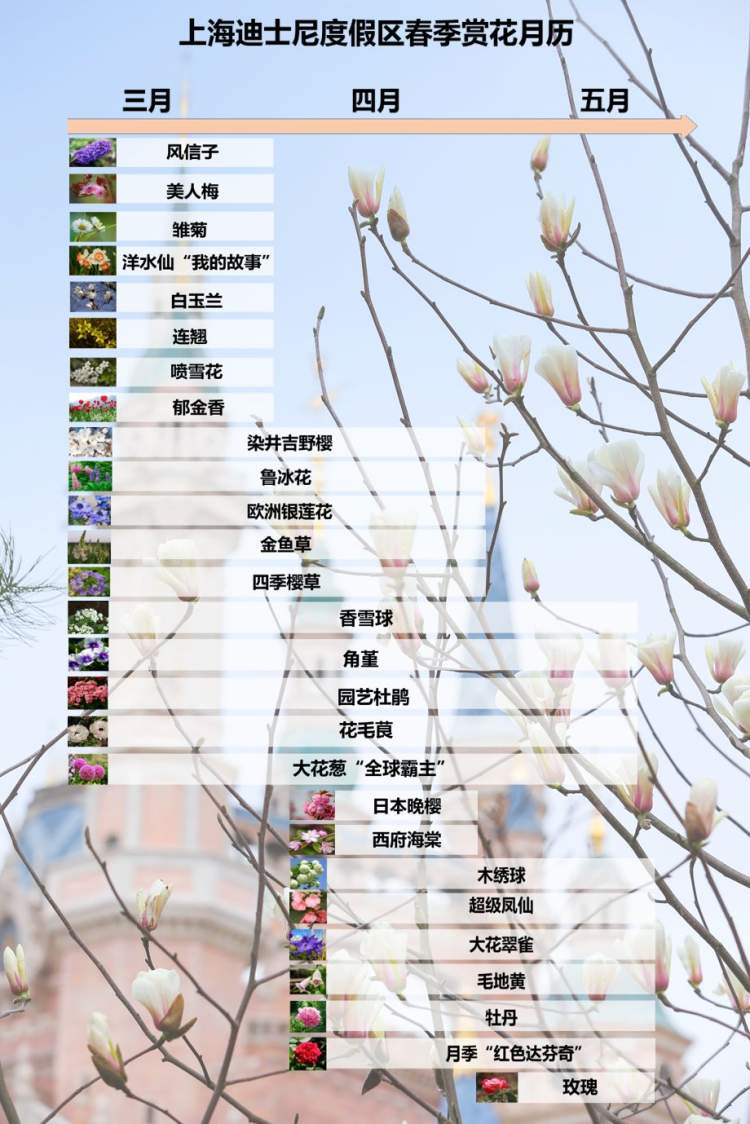 今天,也是迪士尼全新春夏畅游季卡开始使用的日子,手持季卡,拿着下面这份赏花月历,开始春日的迪士尼之旅吧。