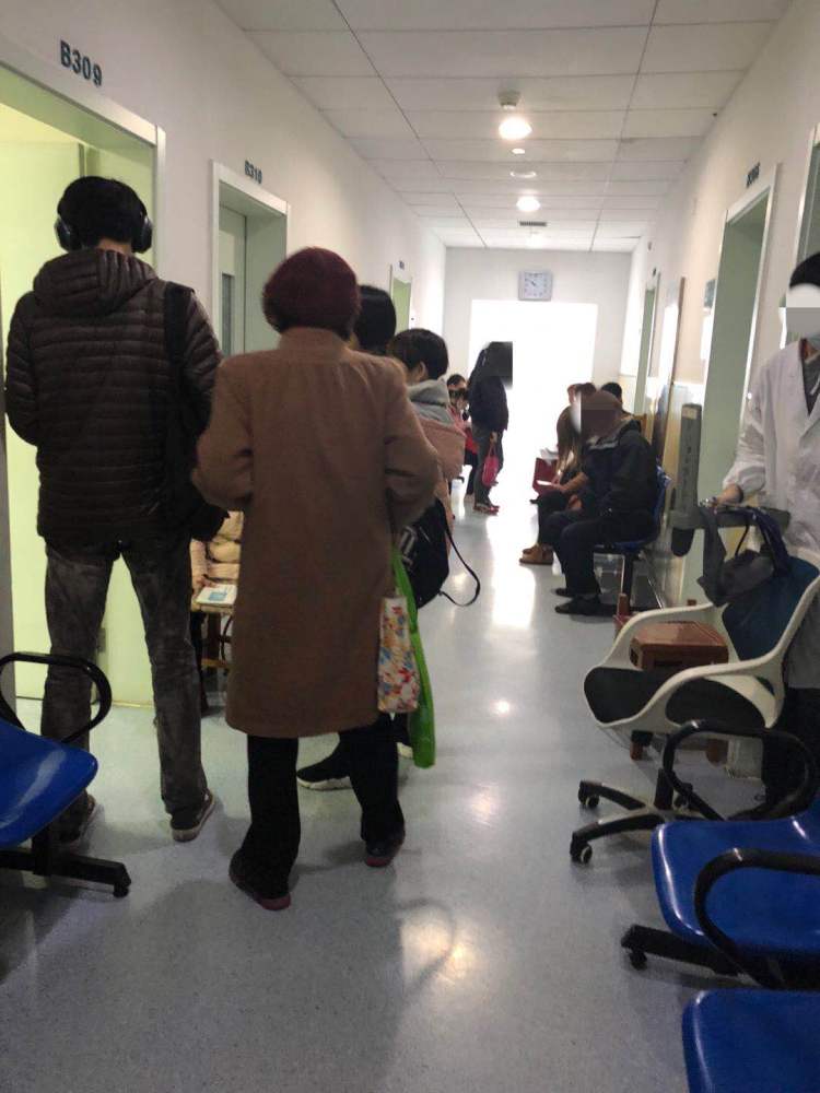 在门诊大楼三楼,周到君看到,普内科门诊外,很多病人正在等待。四个普内科门诊诊室开放,目前开放时间是周一到周六全天。