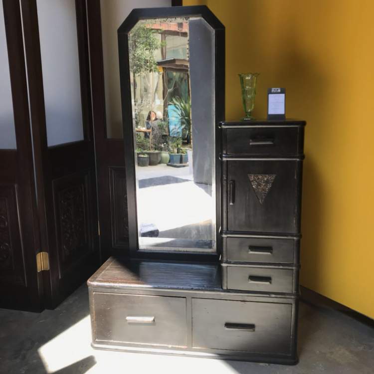 作为曾经的“东方巴黎”,上海理所当然地吸纳了当时最时髦的设计语言,在凹凸库还可以看到许多中国传统文化密切相关的符号。虽然不见当年雕琢祥云飞鸟,花卉争艳的能工巧匠,但这一份艺术的审美却随着代代“柴米油盐”的质朴生活经世辗转,传递到普通民众之中,越显其沉稳从容之美。无怪乎原本钟情于极简明式家具的丁乙就此“移情别恋”。海派老家具的美颇“接地气”,好像在入口处那早已不平整的镜子中依稀可以看到三十年代那个春光明媚的上海。
