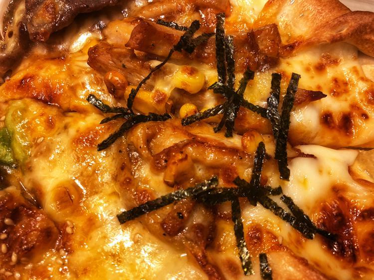 就是日料里照烧鸡肉的味道!鸡肉被烤得外焦里嫩,混合在浓郁的芝士里,配合着颗粒饱满的玉米,带着微甜。点缀的海苔条很贴心,吃顿日料也不过如此了~