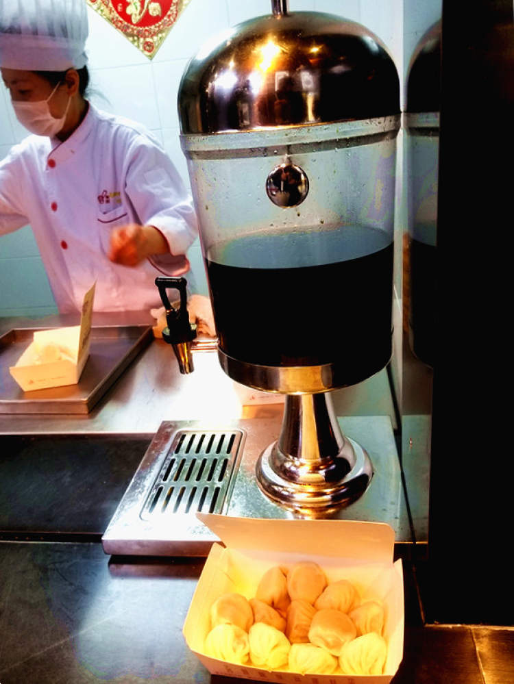 早上8点30分,周到君来到豫园南翔馒头店二店一楼的外卖窗口,这个时间,没有顾客排长队,感觉真好。但是,小笼包需要现蒸,于是等待了6分钟后,周到君拿到了这份充满了回忆的小笼包。ps.一楼外卖窗口只有猪肉馅的哦,15元12个。如果想吃其他口味,需要到2楼,不过10点钟才开门。