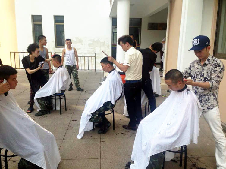 除了服务周边社区老人,“馥荣护肤造型”店对面的上海印钞厂也是他们的服务对象,每个月定期到印钞厂为部队官兵们理发。