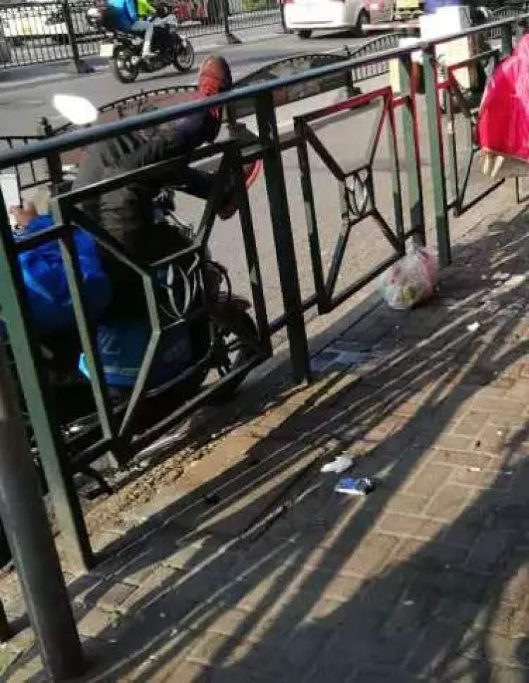 可以看到,地上确实有不少垃圾,以餐巾纸、香烟、一次性筷子居多。垃圾用塑料袋一装,就这么直接扔在人行道上,偶尔还能见到污水横流。加上这段路的人行道较为狭窄,走在路上的体验确实不敢恭维。
