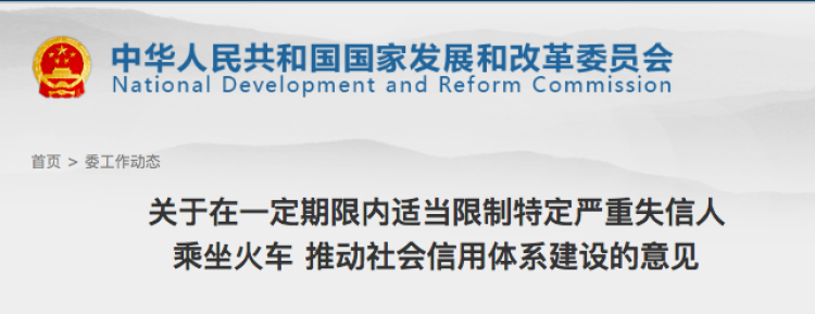 《意见》说到,对于发生失信行为人的名单,各铁路运输企业每月第一个工作日在中国铁路客户服务中心(12306)网站、“信用中国”网站发布。