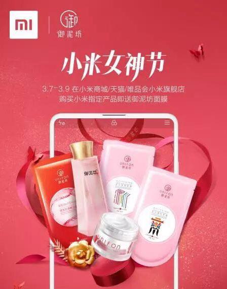 今年3月8日前夕,御泥坊和小米在电商平台上开展了“小米女神节”活动,买小米,送面膜↓