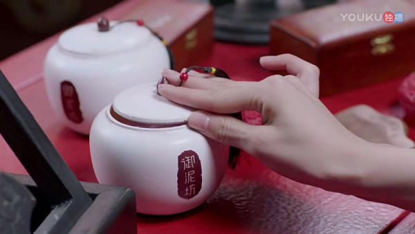 除了场景植入,剧中道具也有御泥坊的露出,比如正在播出的大IP《烈火如歌》↓