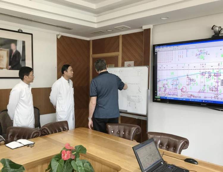 通过远程会诊视频,他热情地与上海的医生、病人打招呼,澳洲的医学助理兼翻译就坐在他的身边。与此同时,东方南院五楼会议室,在消化内科医生朱博士的协助下,患者一边陈述症状一边回答马歇尔的问诊。上海与珀期斯没有时差,两院区的远程会诊无障碍进行。