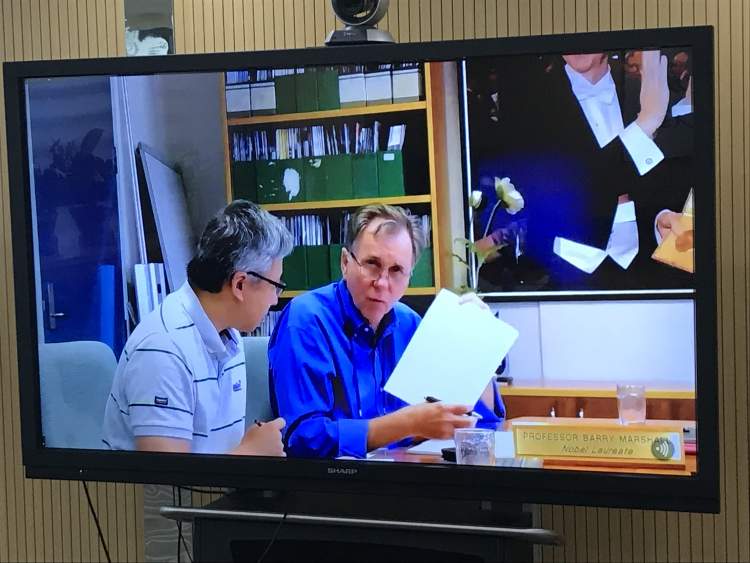 坐在澳洲珀斯马歇尔hp精准治疗中心的诊室里,蓝色衬衣、金色头发的诺奖得主、消化内科医生马歇尔教授显得神采奕奕。