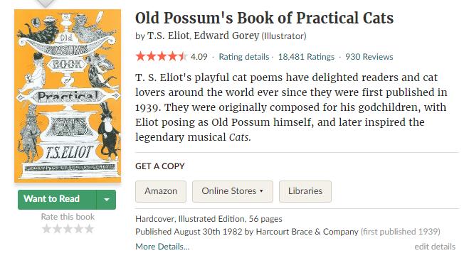 但你可能不知道,这部音乐剧的原著是一部诗歌集,其作者是大名鼎鼎的现代诗诗人艾略特!