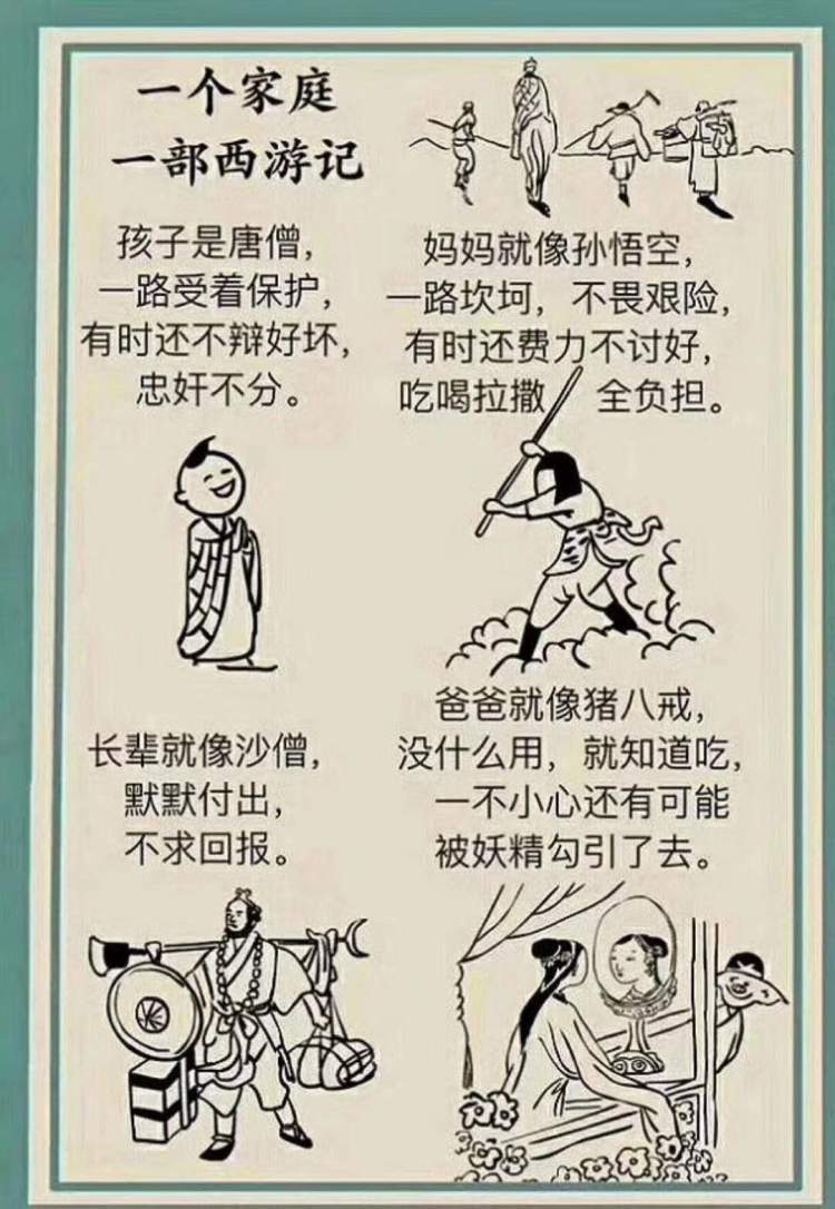 “孩子是唐僧,妈妈就像孙悟空,爸爸就像猪八戒,长辈就像沙僧”成了许多家庭无奈而又自嘲的比喻。