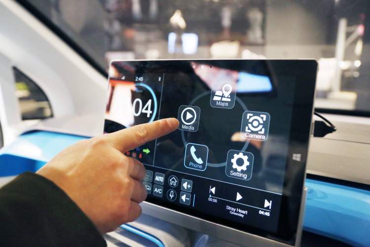 目前中控台是固定着一个surface, 用作多媒体系统或仪表,这是给原型样车应景用的,量产后就不敢这么玩了,毕竟得压低成本卖6.5万元一台!