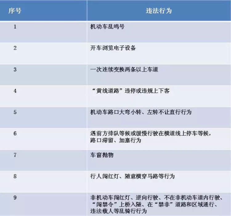 据第4焦点上海交警微发布最新消息,“机动车乱鸣号”、“开车浏览电子设备”、“一次连续变换两条以上车道”等九大类交通违法在部分外省市来沪人群中高发。