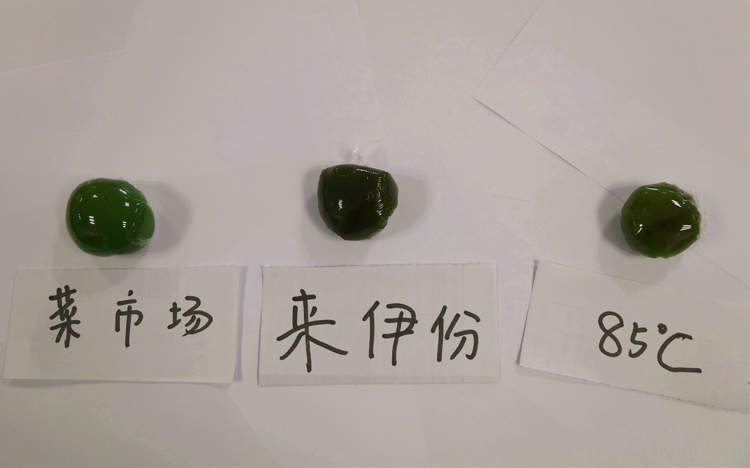 菜市场进门右手边有一家杂货铺,铺子在显眼的地方摆卖青团,12元/斤,老板以2元一个的价格卖给如花。是否真的像老板写的“糯”、“好吃”呢?