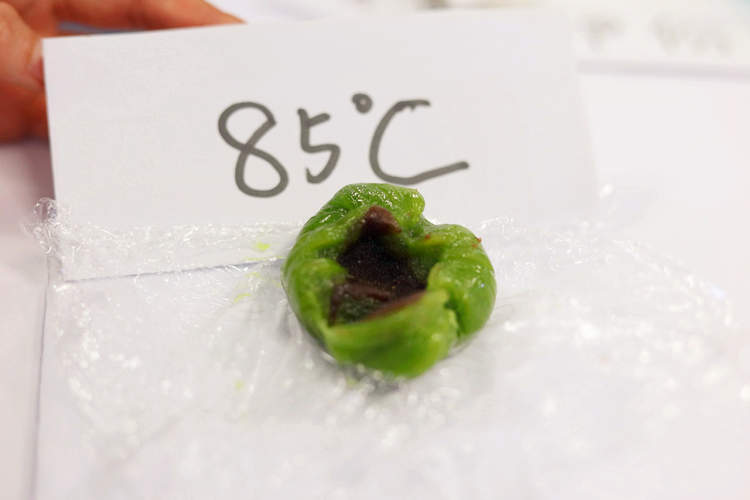 面包店自然不会放过青团,85℃推出的是传统豆沙青团。