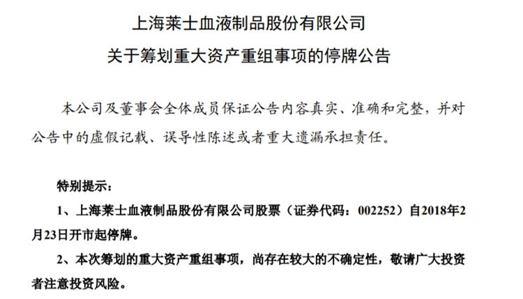 大概出于这双重原因,上海莱士在今年2月23日宣布停牌,并且直到现在都未曾复牌。