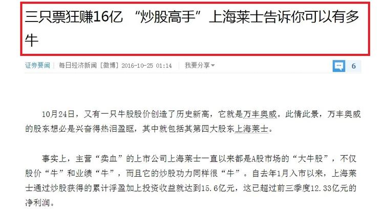 ■当年,上海莱士炒股的收益比企业的前三季度净利润高了3亿!