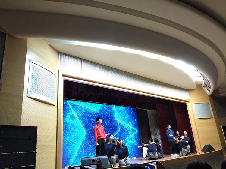最后,学生还结合自身特长,将歌曲《夜空中最亮的星》改编了英语版,中英文对唱,展示了不一样的上外附中风采。