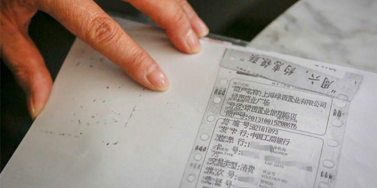 徐女士等购房者很纳闷:为什么在售楼处刷POS机付款时,POS单据上也写着绿茵置业呢?