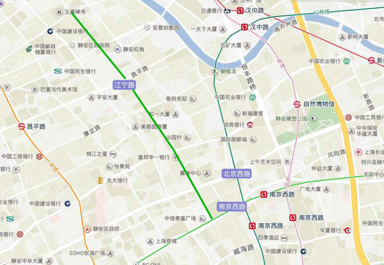 ■图中绿色实线为江宁路(安远路至南京西路)架空电线整治路段