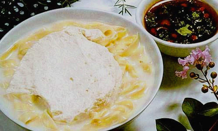 豆花面也是周到君强烈推荐的美食。面条上盖上一团雪白的豆花,配以用辣椒水、姜末、细葱、肉燥、麻油、鸡丁等做成的蘸料,蘸料的浓郁与面和豆花的清淡,可谓矛盾统一、相得益彰。