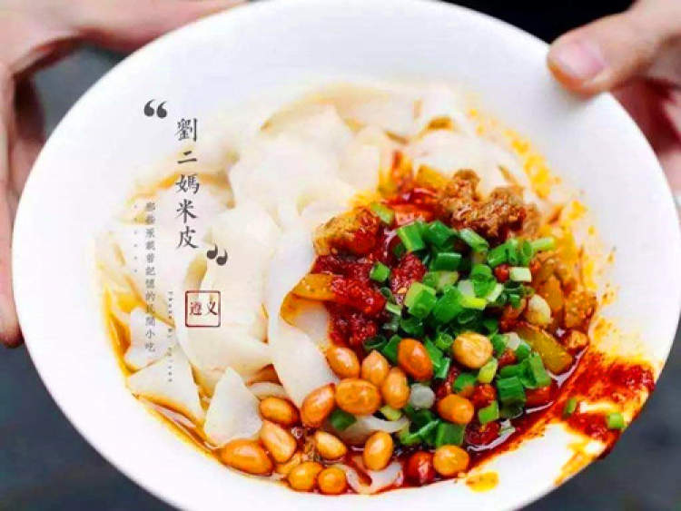 而遵义人自己,平时吃得最多的恐怕是米皮,其在遵义的地位类似面条,可以是主食,也可以是小吃。米皮的原料同样是优质大米,而配料就丰俭随意了。遵义最有名的米皮,一家叫和尚米皮,一家叫刘二妈米皮。在周到君看来,算是各有特色,但无论哪家,他们的辣椒总是能让你吃出与家里的辣椒不一样的味道来。