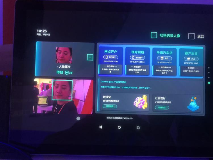 眼镜还能识别出人具体是谁,通过底层经过用户授权的标签数据,能够看到客户的相关情况。