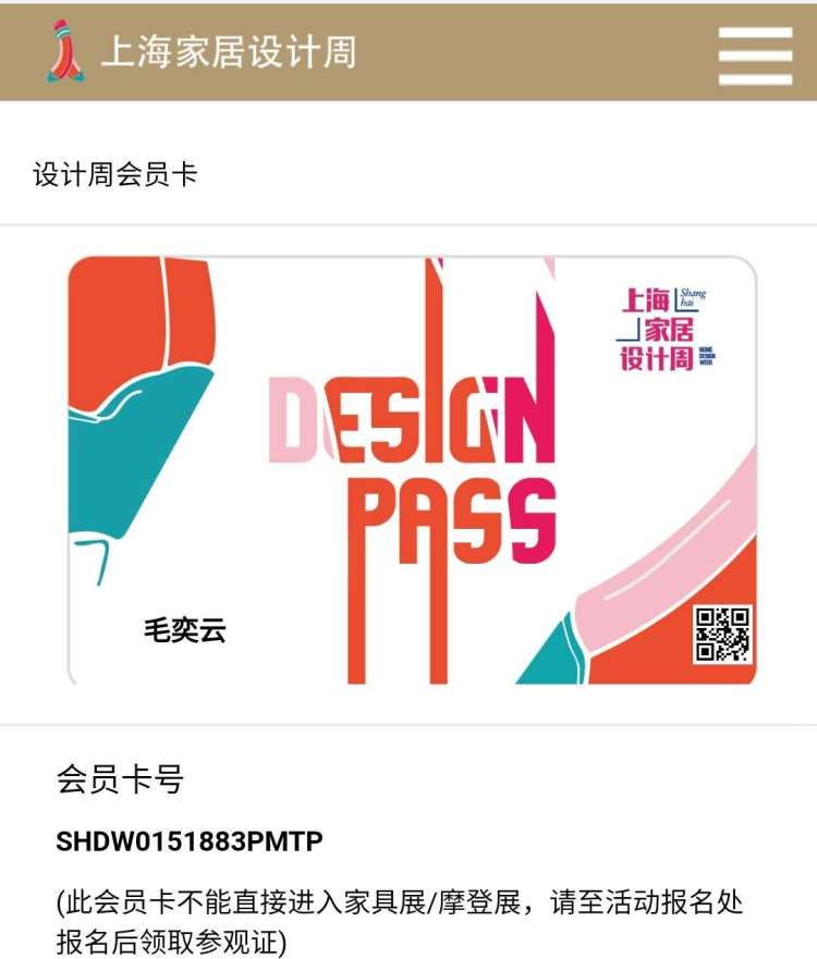 ②点击菜单中的“会员卡”,领取“设计周会员卡”。